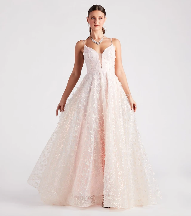 Say Yes Women's Beaded Corset Ruffle V-Neck Ball Gown