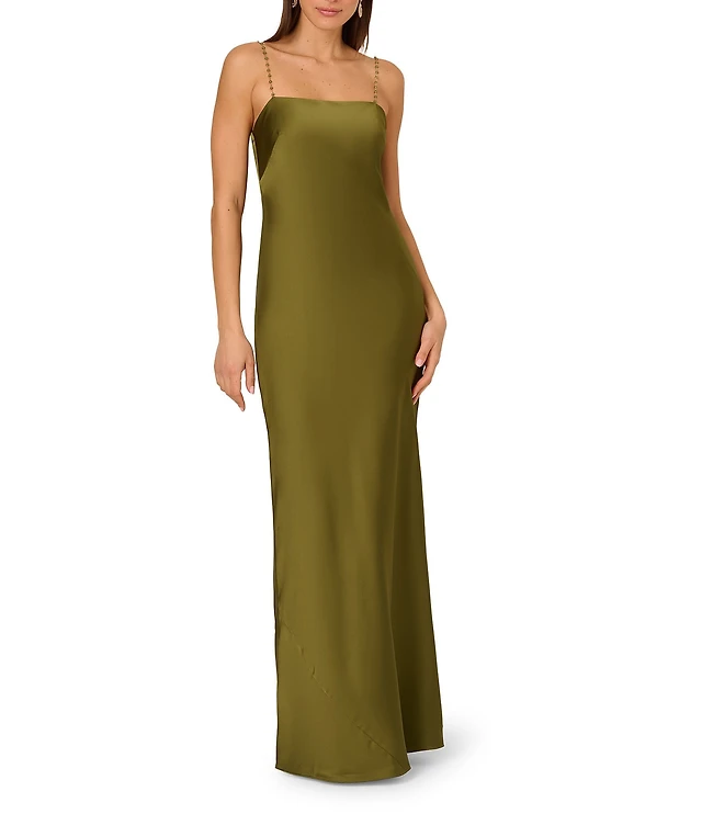 Adrianna Papell Women's Asymmetrical Bead Crepe Gown
