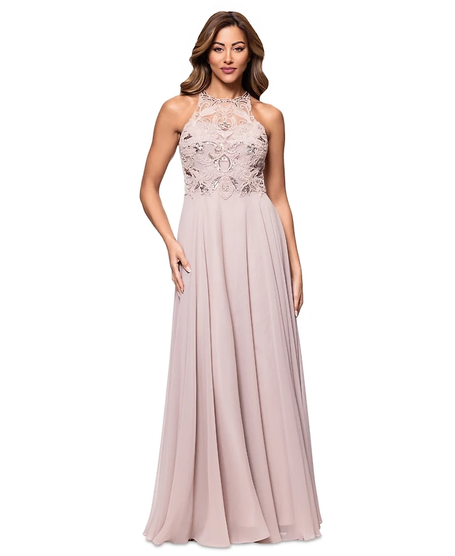 Women's Long Bell Sleeve Boat-Neck Beaded Gown