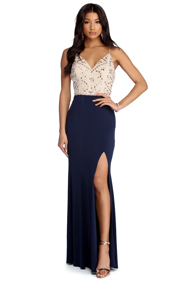 Daniella Sleeveless Faux Pearl Bead Slim Formal Dress