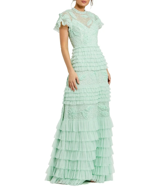 Beauut Women's Embellished Sequin Beaded With Short Flutter Sleeves Maxi Dress
