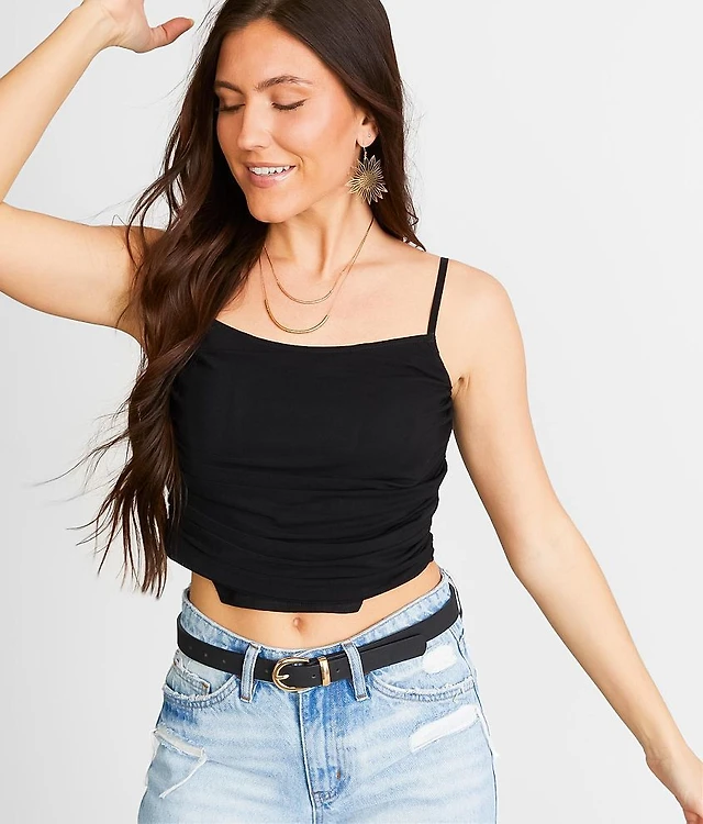 Coin 1804 Plus Pebble Mesh Inset Side Ruched Tank Top