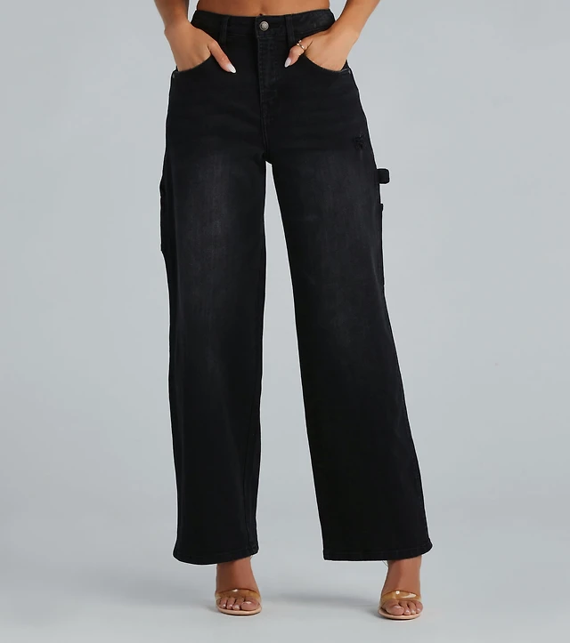 Bcbg Women's Mid-Rise Embellished Detail Wide-Leg Jeans