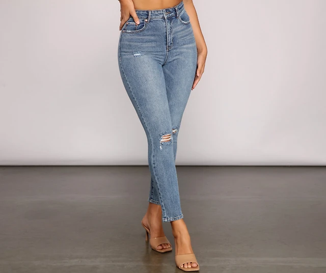 Code Bleu Straight Leg High Rise Frayed Ankle Hem Jean
