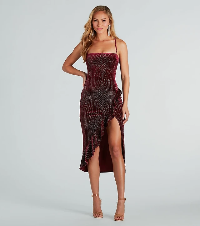 Lilianna Formal Rhinestone High Slit Midi Dress