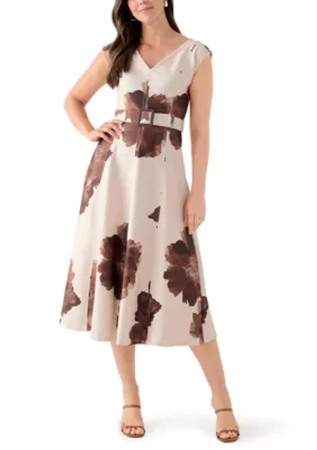Women's Short Sleeve Floral Print Fit-and-Flare Dress
