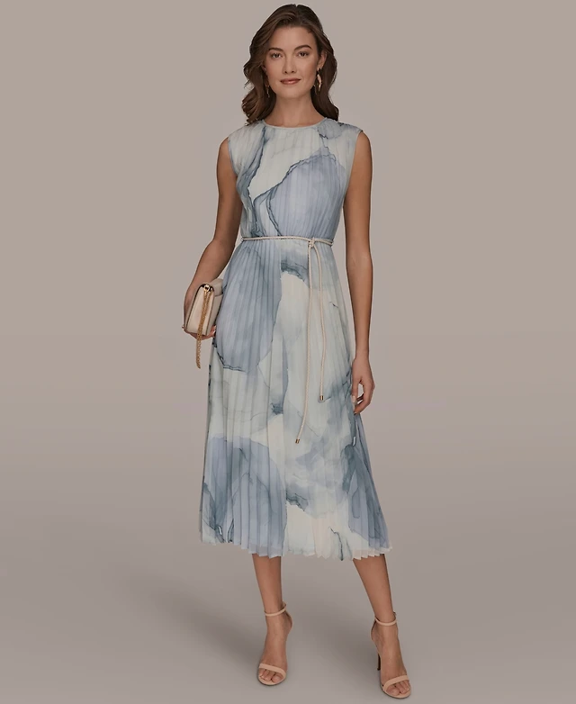 Donna Karan New York Women's Sleeveless Pleated A-Line Midi Dress