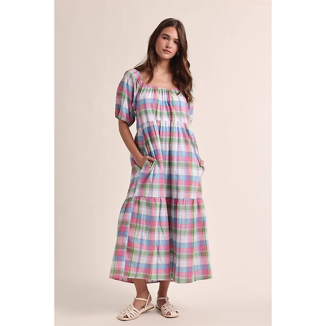 Things Between Sleeveless Plaid Midi Dress