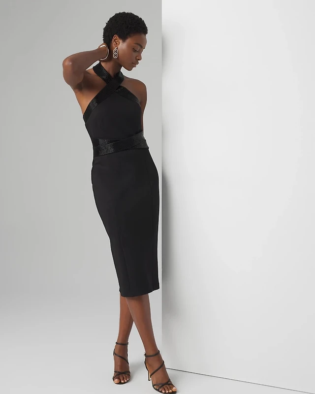 Mac Duggal Floral Brocade Strapless Sleeveless Gathered Skirt Side Pocket Midi A-Line Dress