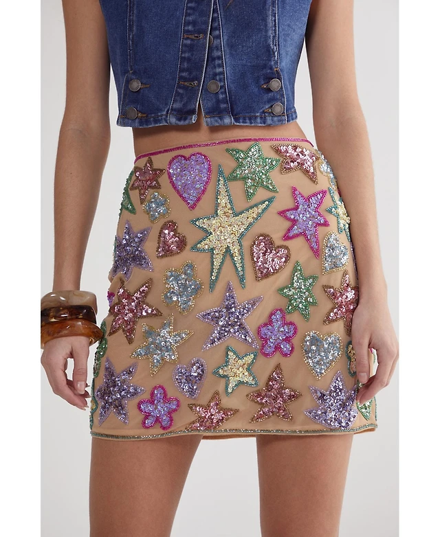 Edikted Women's Staj Bead & Sequin Lace Mini Skirt