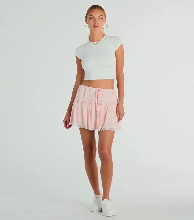 WEST OF MELROSE Lace Trim Womens Mini Skirt - WHITE