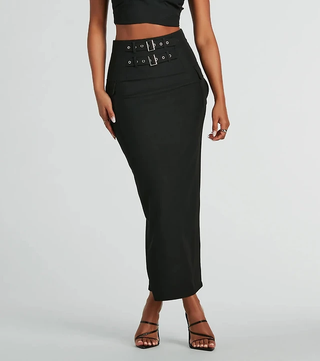 Glitzy Rhinestone Fringe High Slit Denim Maxi Skirt