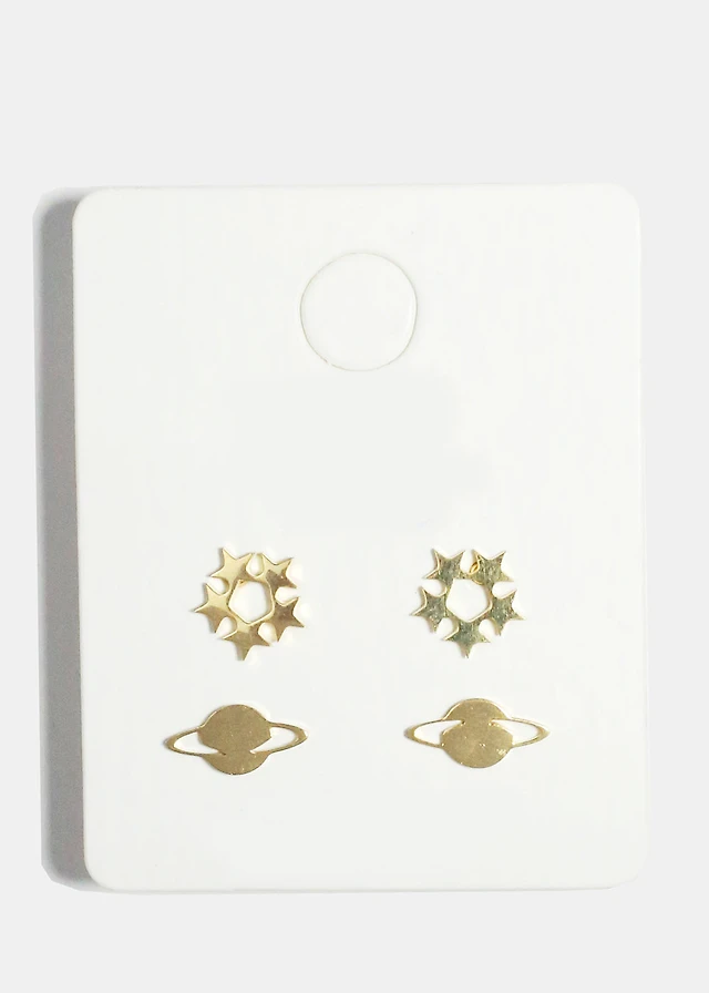 3-Pair Elephant, Star & Butterfly Stud Earrings