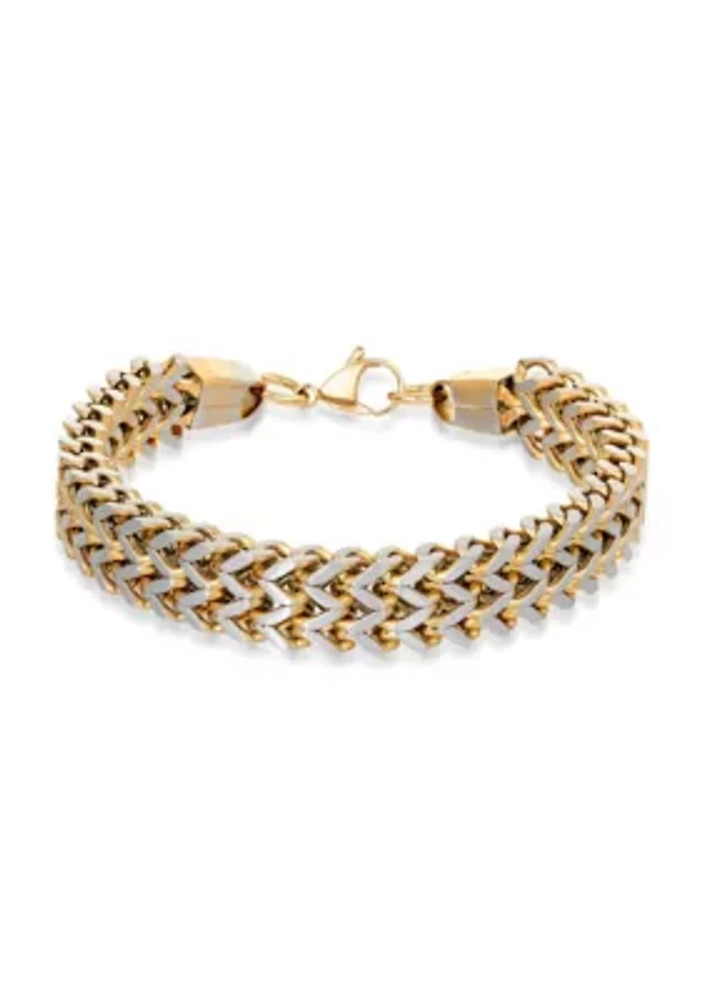 Men's 18k gold plated stainless steel two tone cuban necklace and bracelet set