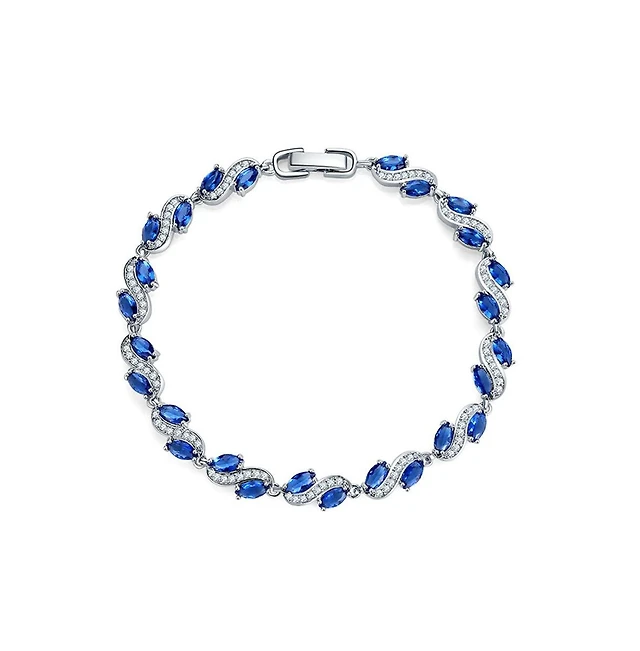 Hollywood Sensation Cubic Zirconia Tennis Bracelet with Marquise Sapphire Color Cubic Zirconia and Cubic Zirconia