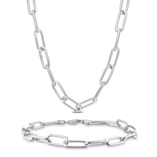 2-Pc Set of Men's 6mm Polished Paperclip Chain Necklace & Bracelet in Sterling Silver