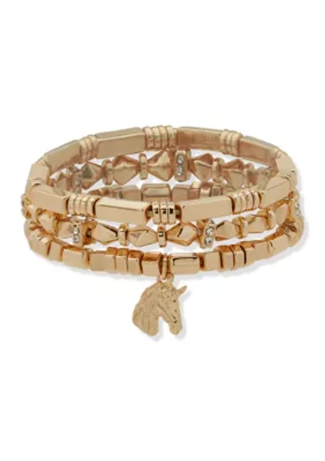 Tri Tone Multi Row Stretch Boxed Bracelet