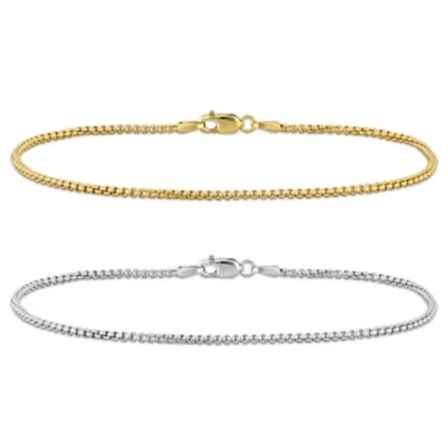 2 Piece Set of 1mm Ball Chain Necklace & Bracelet in Yellow Plated Sterling Silver, 18" & 7.5"