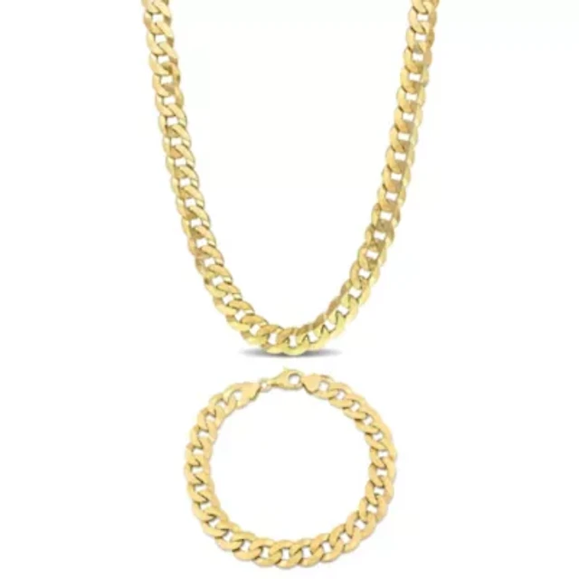 2-Pc Set of Men's 6mm Polished Paperclip Chain Necklace & Bracelet in Yellow Plated Sterling Silver