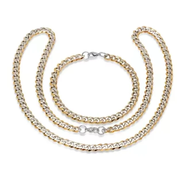 Men's two tone stainless steel and 18k gold plated stainless steel Cuban chain link bracelet and necklace set