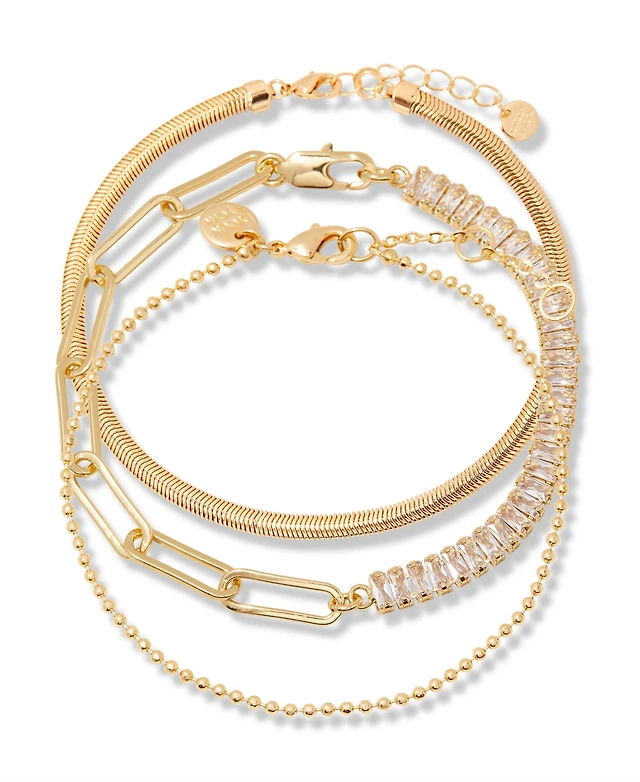 2-Piece Set of Diamond Curb Link Bow Earrings & Bracelet in Yellow Plated Sterling Silver - 7.5 in