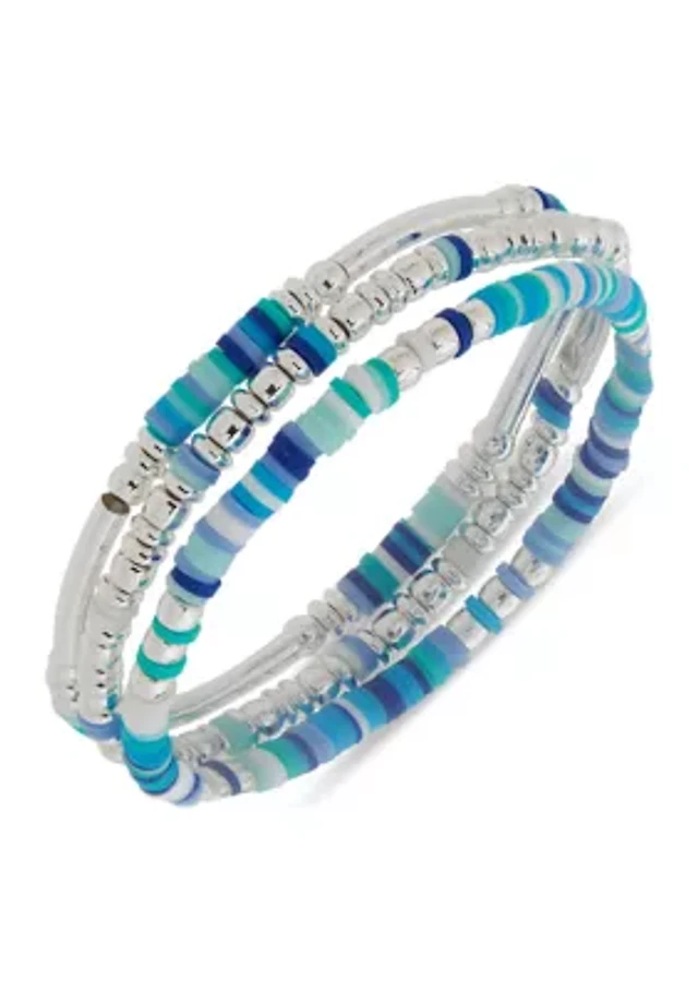 Set of 3 Tri Tone Crystal Stretch Boxed Bracelets