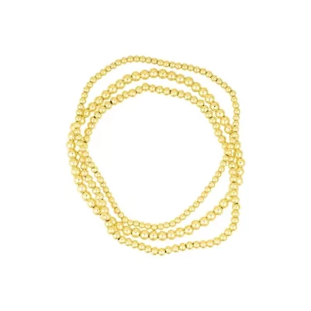 Beaded Puffy Gold Tone Stretch Bracelet Set