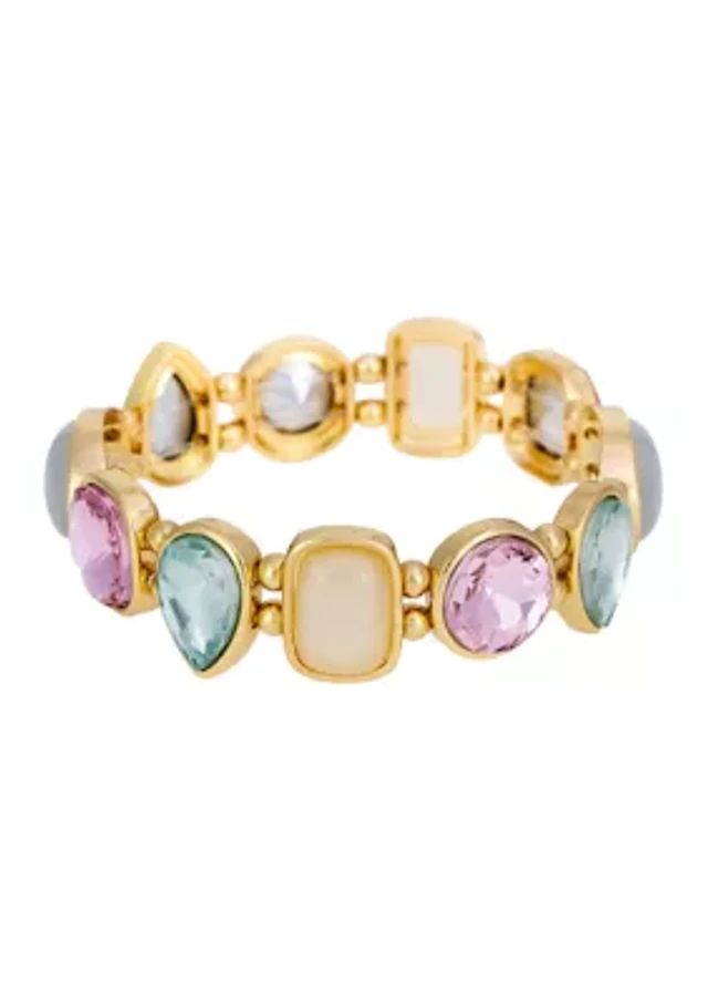 Mixed Multi Shape Pastel Colored Stone Stretch Bracelet