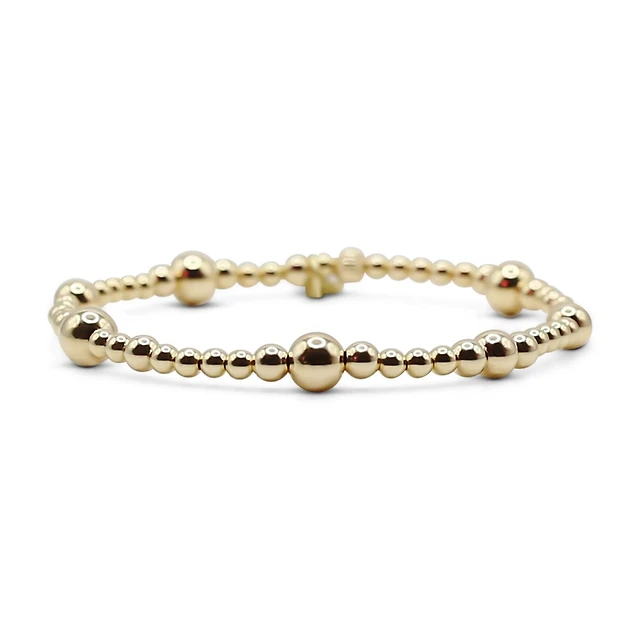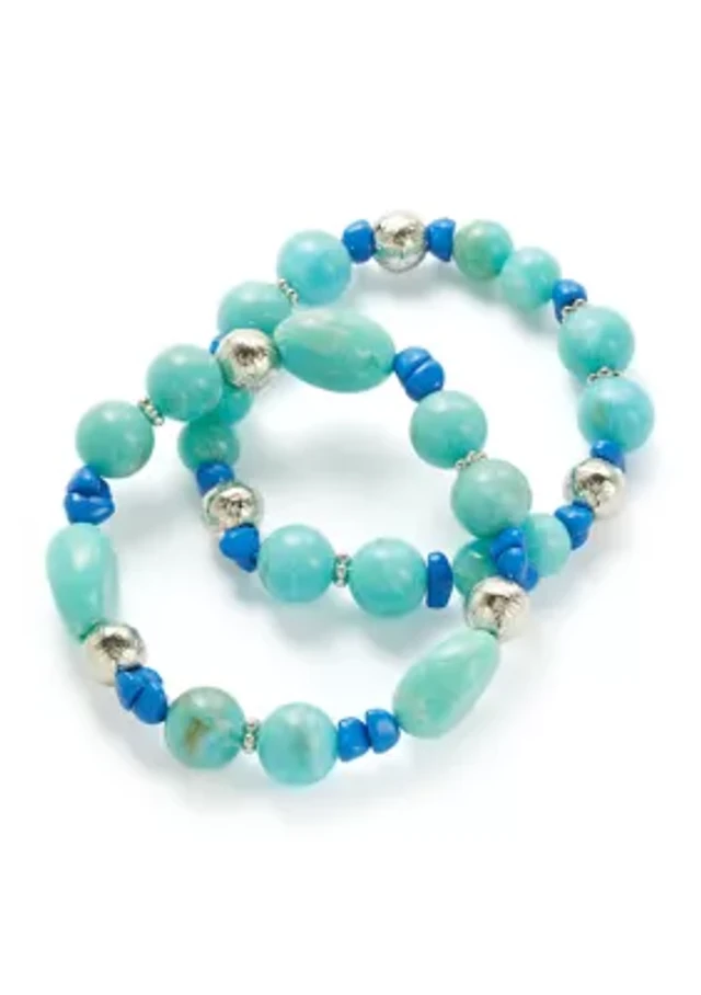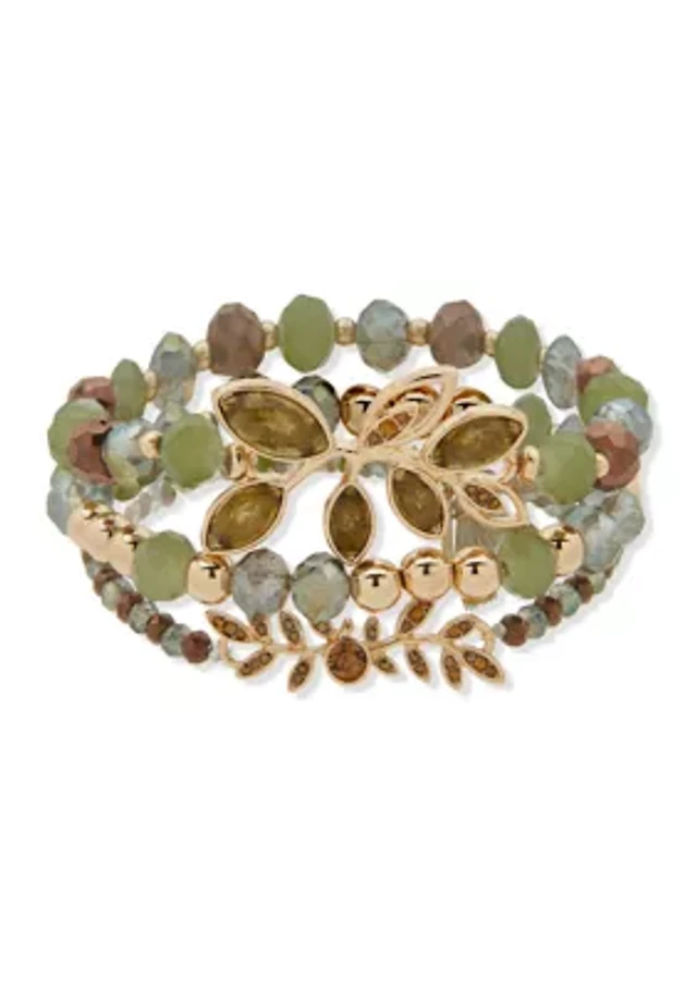 Gold Tone Natural Beaded Charm Stretch Bracelet Set
