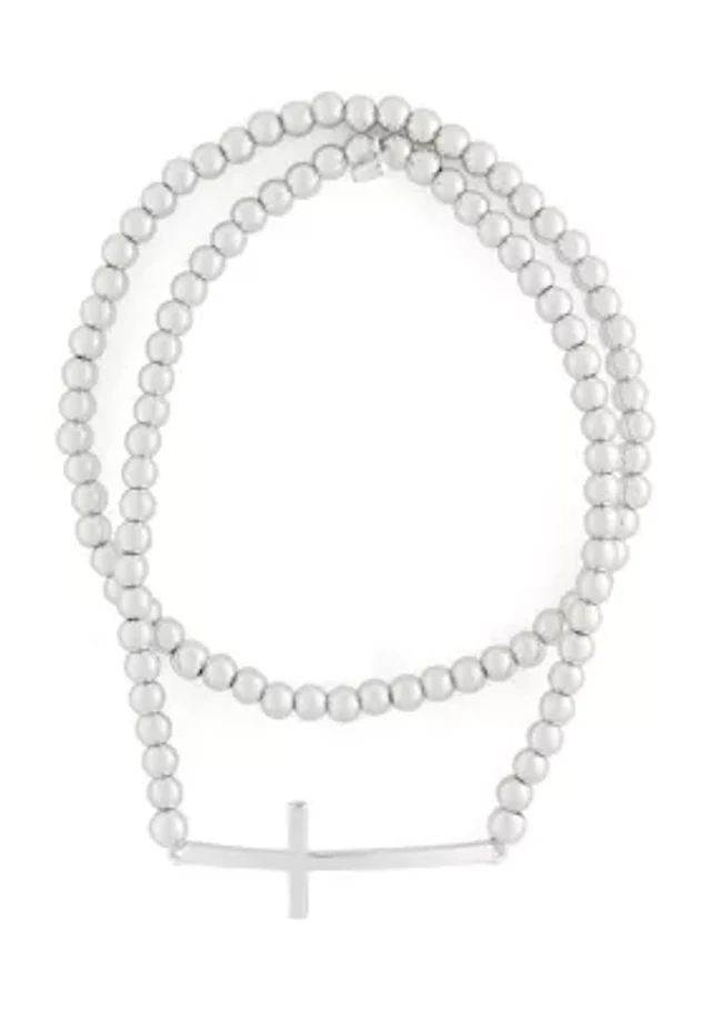Silver Tone Turquoise Tone Beaded Charm Stretch Bracelet Set