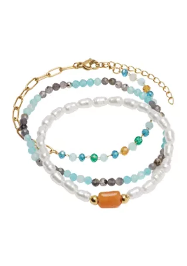 Tarnish Resistant 18k Gold Plated 3-Chain Bracelet Set