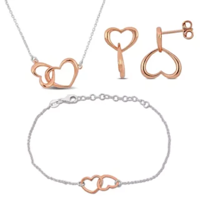 Lab Created 2 Piece Set of Amethyst, African Amethyst & Created White Sapphire Tennis Necklace & Bracelet in Rose Plated Sterling Silver 17" & 7.25"
