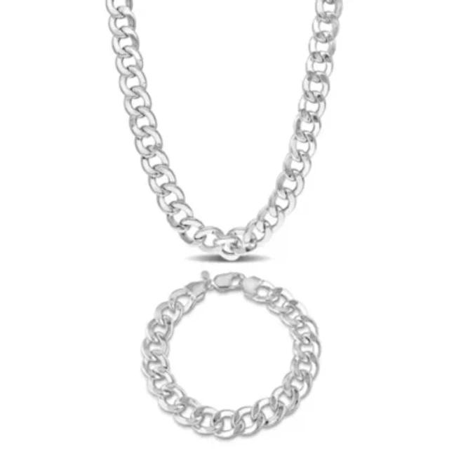 2 Piece Set of Men's 12.5mm Curb Link Chain Necklace & Bracelet in Sterling Silver, 24" & 9"