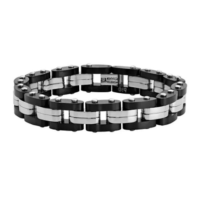 Mens Black Ceramic & Stainless Steel Diamond Bracelet