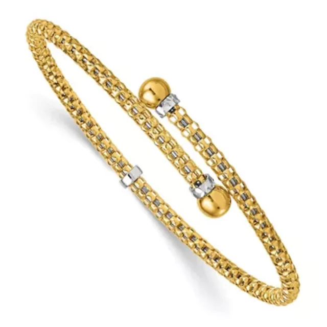 18K Two-tone Polished Diamond-cut Beaded Flexible Bangle Bracelet