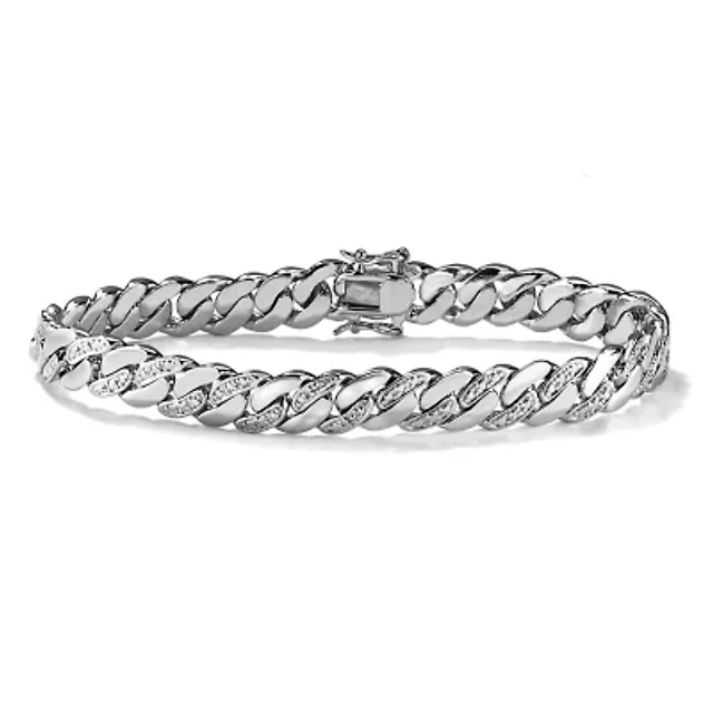 Sterling Silver Baguette Cut Cubic Zirconia Curb Chain Bracelet