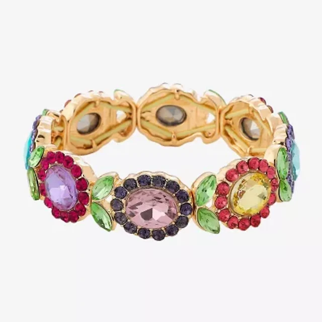 Monet Jewelry Gold Tone Womens Multi Color Glass Flower Stretch Bracelet