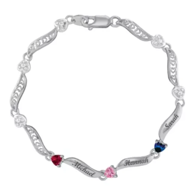 Sterling Silver Cubic Zirconia Heart Station Curb Chain Bracelet