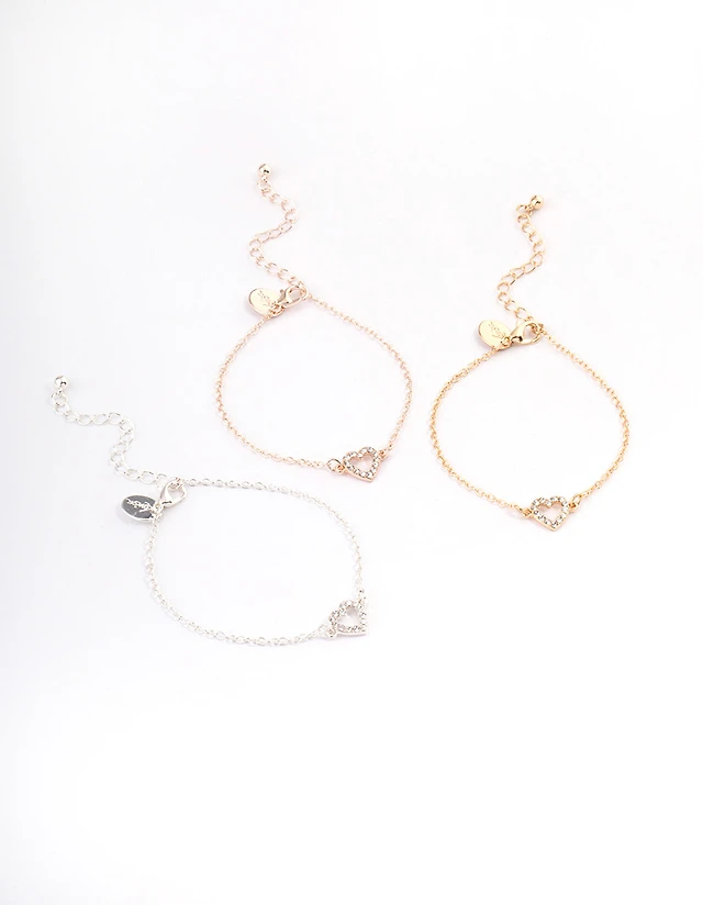 Gold Mixed Diamante Heart & Diamante Bracelets 5-Pack