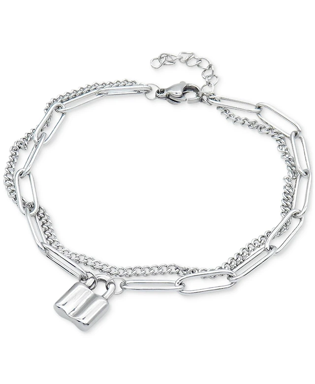 Adornia Silver-Tone Padlock Mixed Chain Bracelet