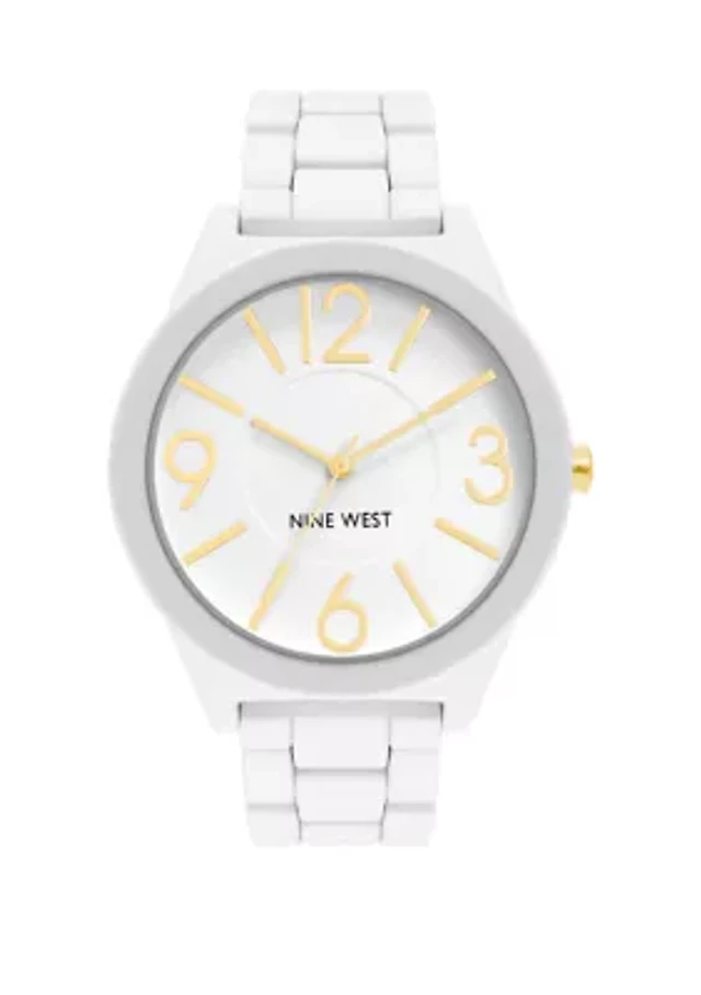 Quartz Crystal Accented Gold-Tone Metal Alloy Charm Bracelet Watch
