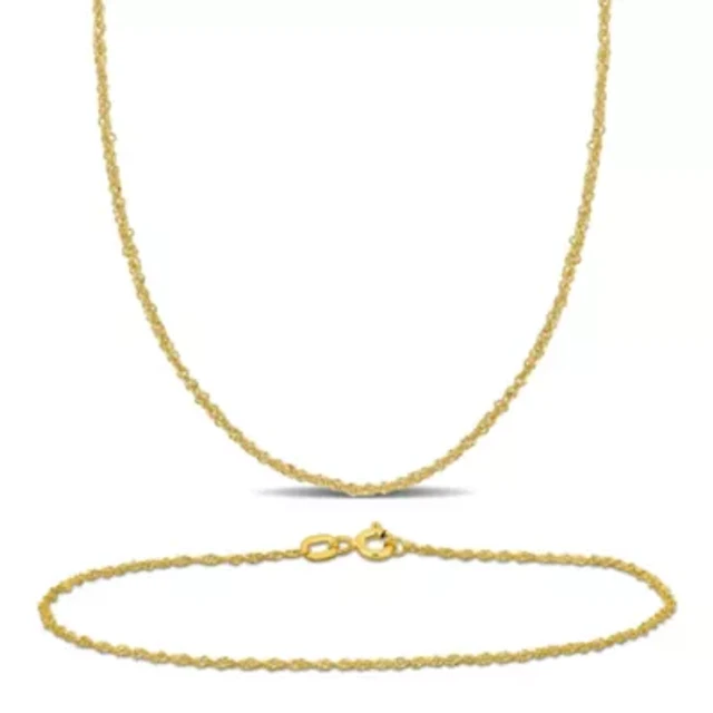 2-Piece Set of Men's 1.2mm Singapore Chain Necklace and Bracelet in 14K Yellow Gold, 20" & 9"