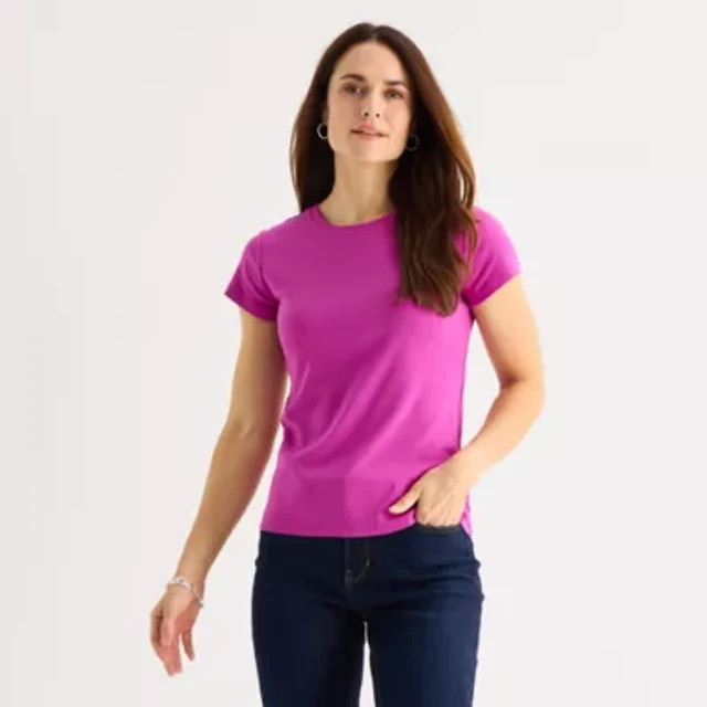 Liz Claiborne Womens Crew Neck Short Sleeve T-Shirt