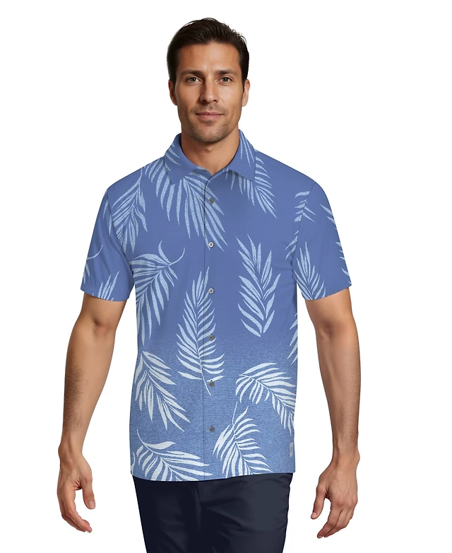Pga Tour Men's All-Over Geometric Palm Print Short-Sleeve Golf Polo Shirt