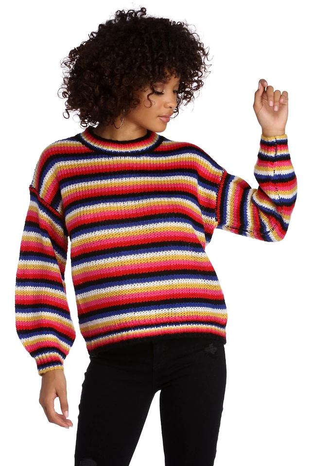 Arizona Juniors Womens Boat Neck Long Sleeve Striped Pullover Sweater