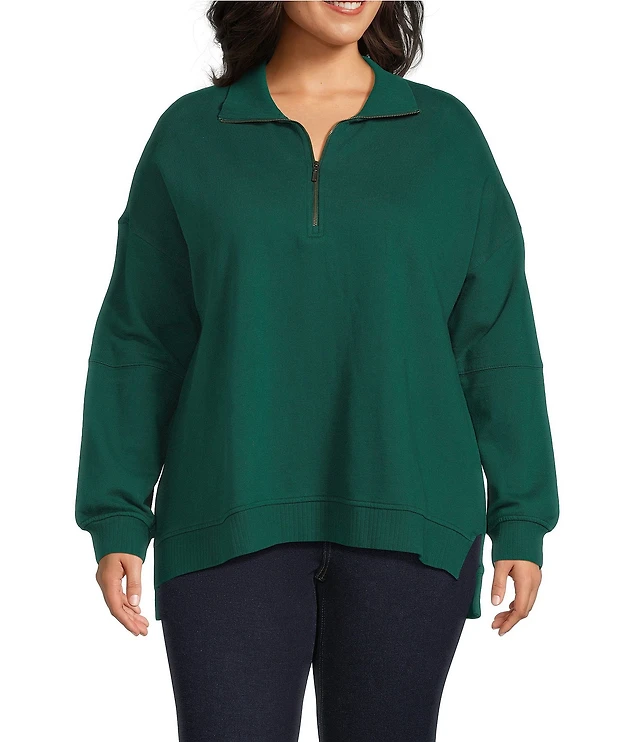 Plus Long Sleeve Textured Quarter Zip Pullover