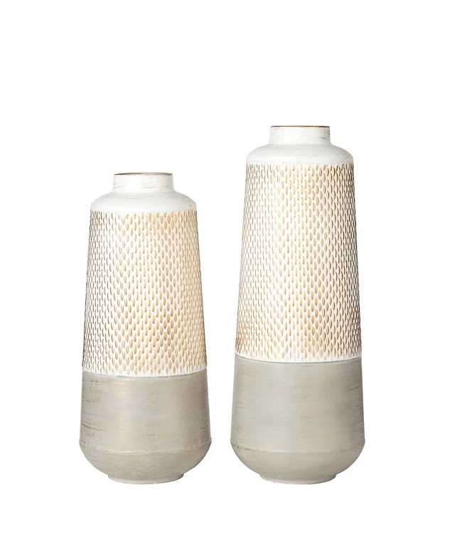 LuxenHome Modern Geometric Pattern Polyresin 19.5-Inch Tall Trumpet Vase