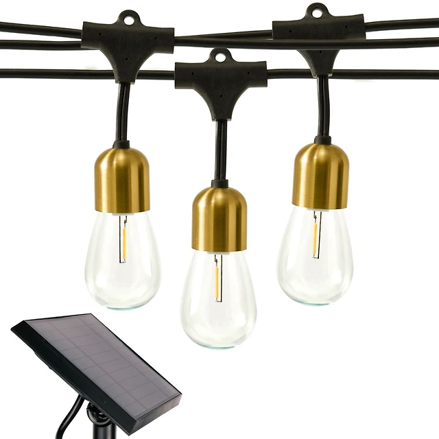 Glow 27ft Solar Powered Led Outdoor String Lights with Brass Hardware