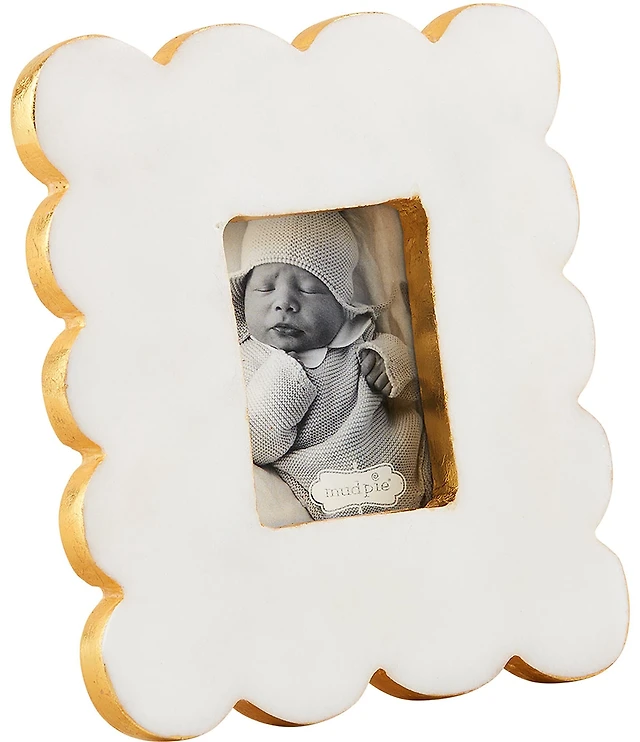 Mud Pie Happy Everything Collection Scalloped Lacquer Wood Picture Frame