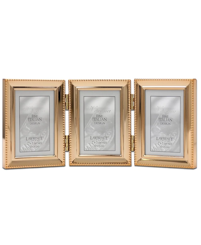 Lawrence Frames 510745T Silver Plated Double Bead Hinged Triple Picture Frame - 4" x 5"